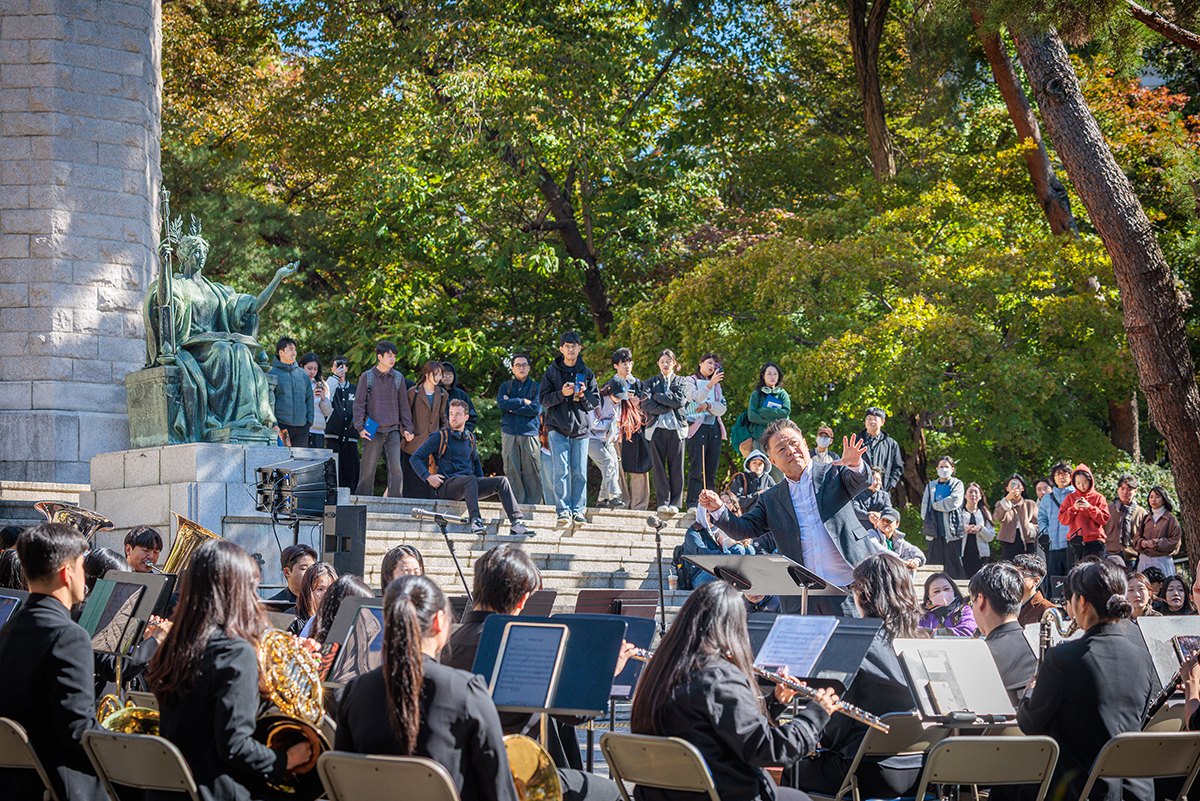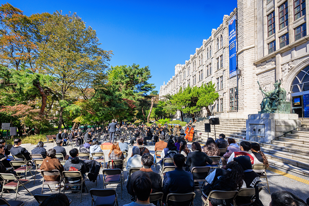 제56회 중앙도서관 작은음악회 <바람이 흐르는 소리: 클래식의 향연, 낭만을 일깨우는 윈드 오케스트라> 연주: 경희 윈드 오케스트라 지도교수: 유병엽 협연: 소프라노 최희원, 바리톤 강산 2025.10.27. 서울캠퍼스 중앙도서관
