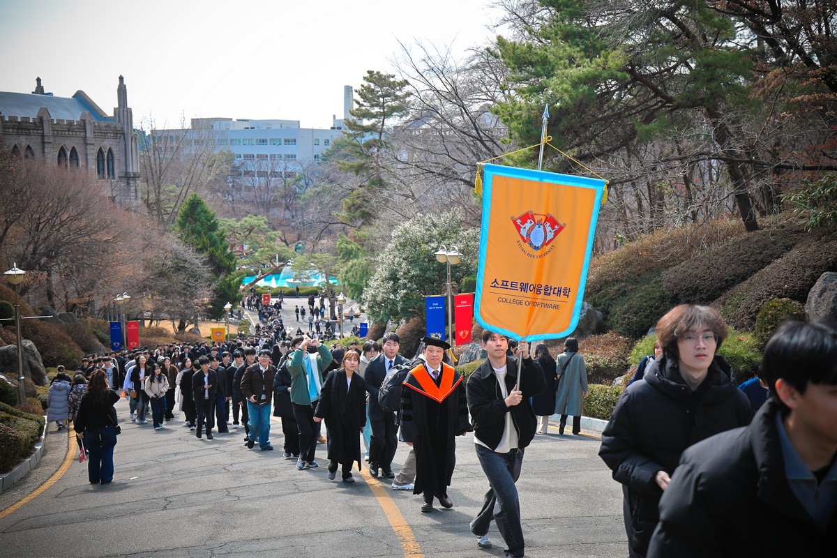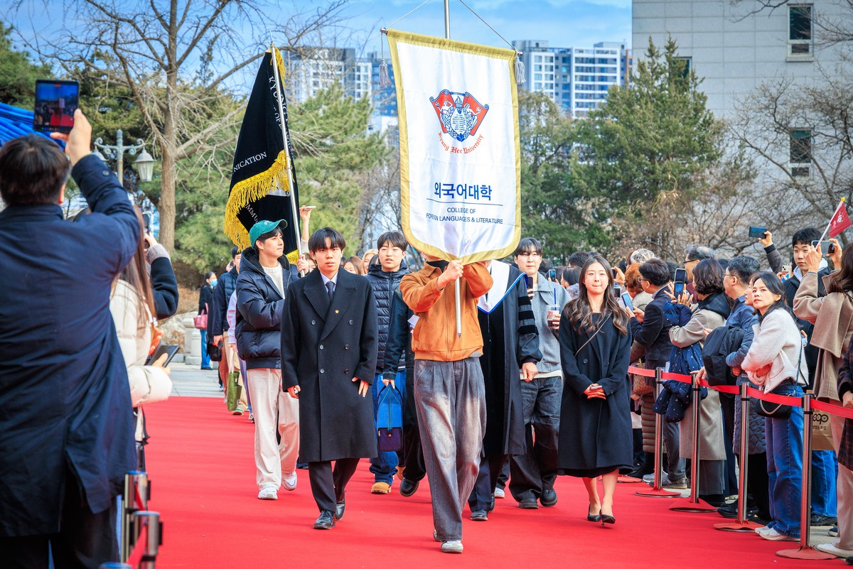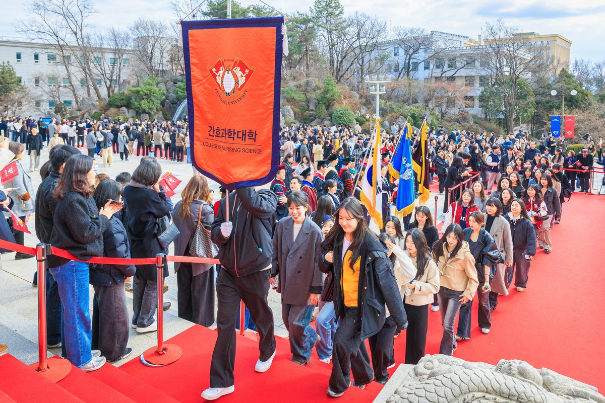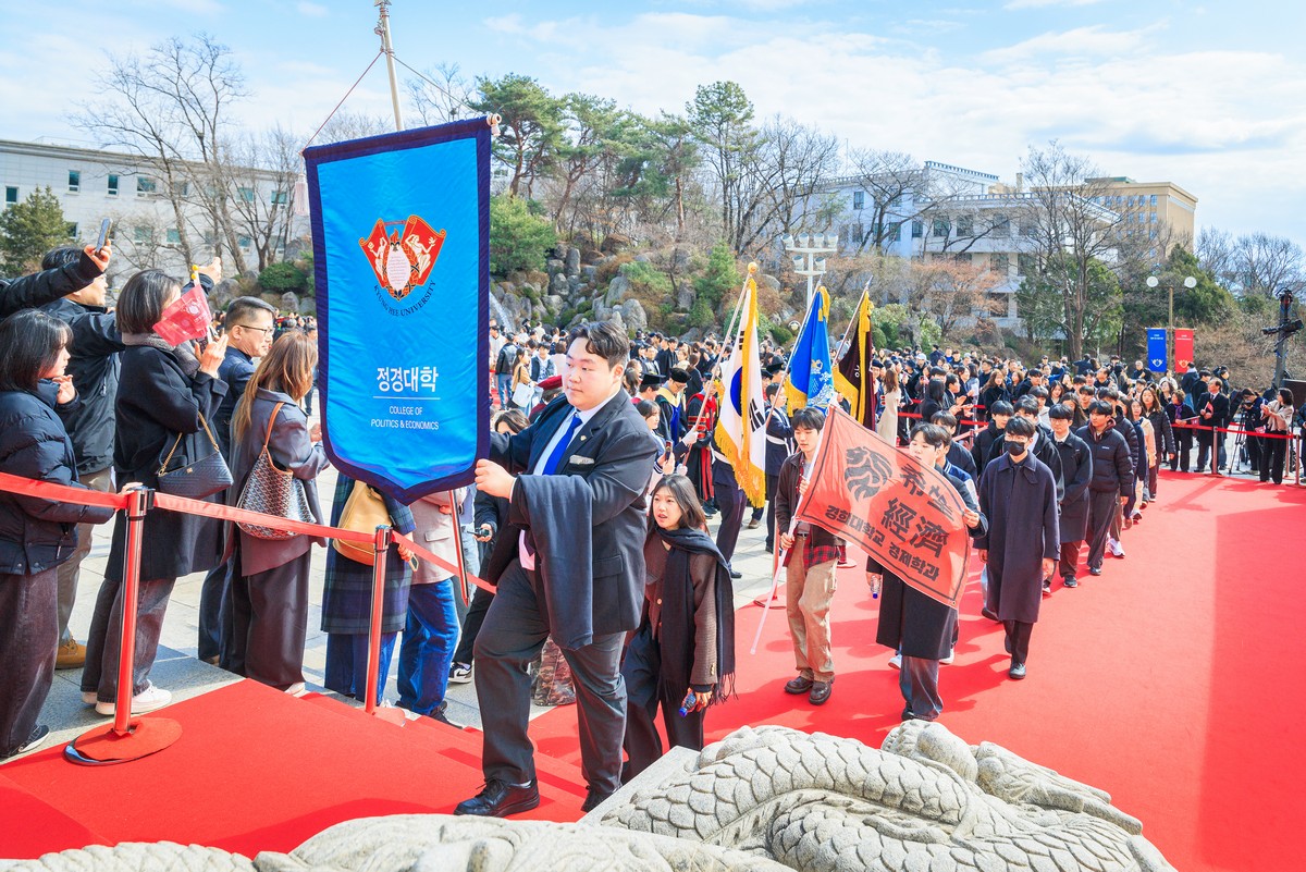 교시탑에서 출발하여 중앙로를 지나 레드카펫이 깔린 평화의 전당을 향해 단대기 행렬이 이어진다. 25개 단과대학 6,067명의 신입생이 경희인으로서 첫걸음을 떼는 경희로운 순간이다. 2013학년도부터 시작된 입학식 단대기 행렬은 경희인으로서 출발을 알리는 상징적인 의식이다.