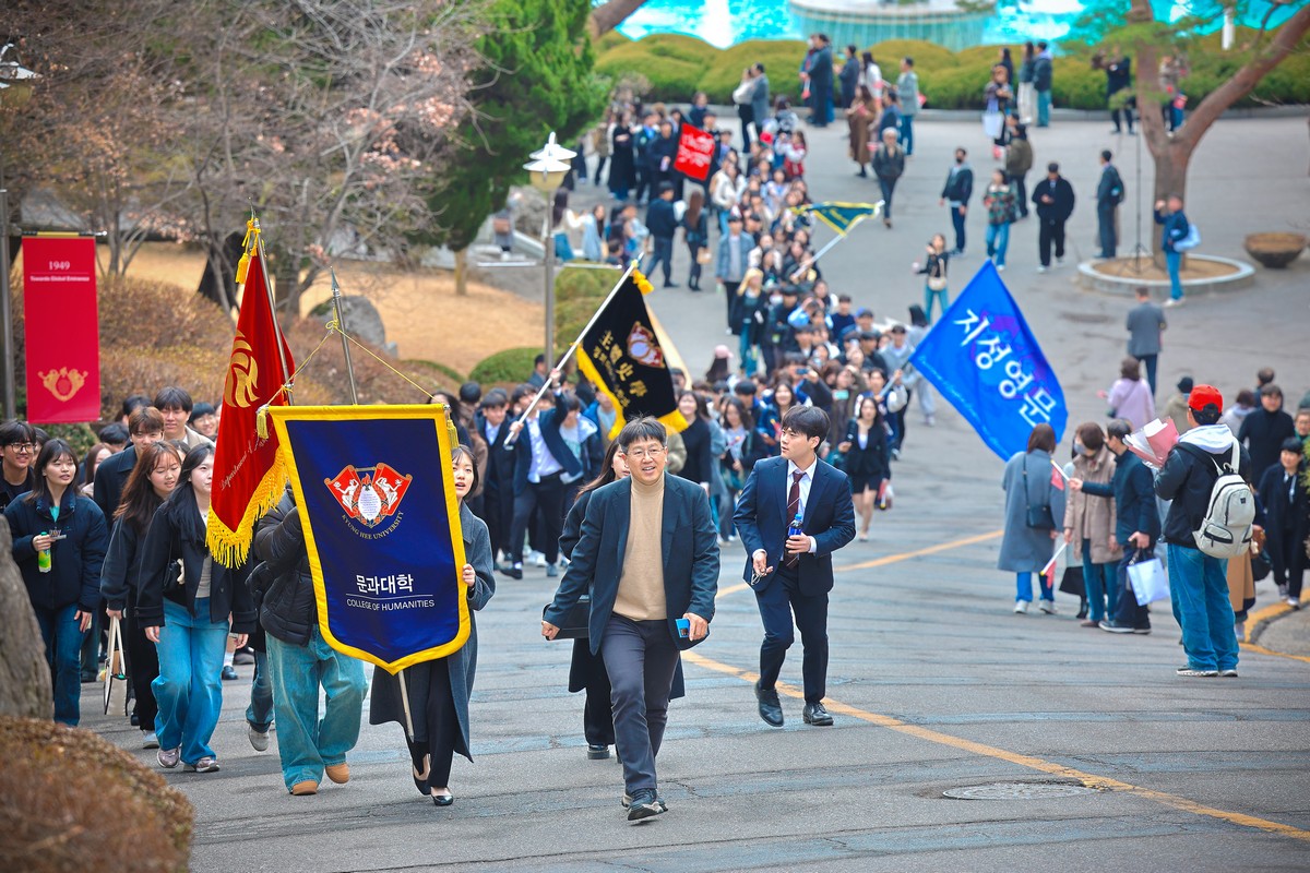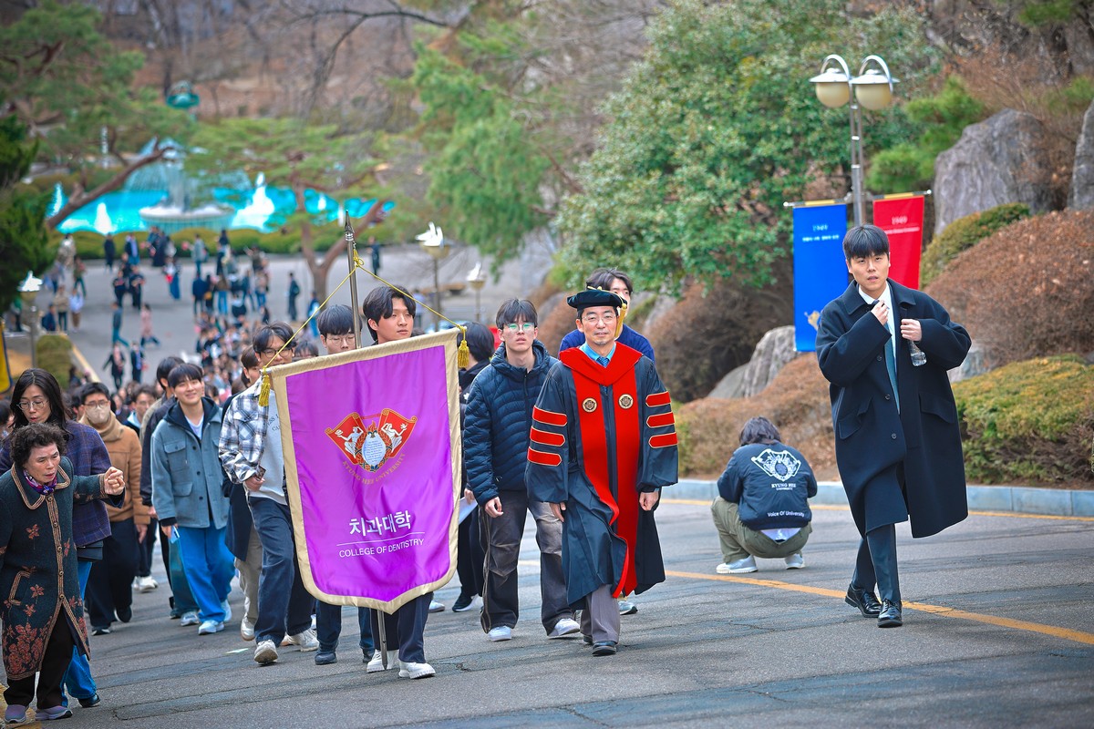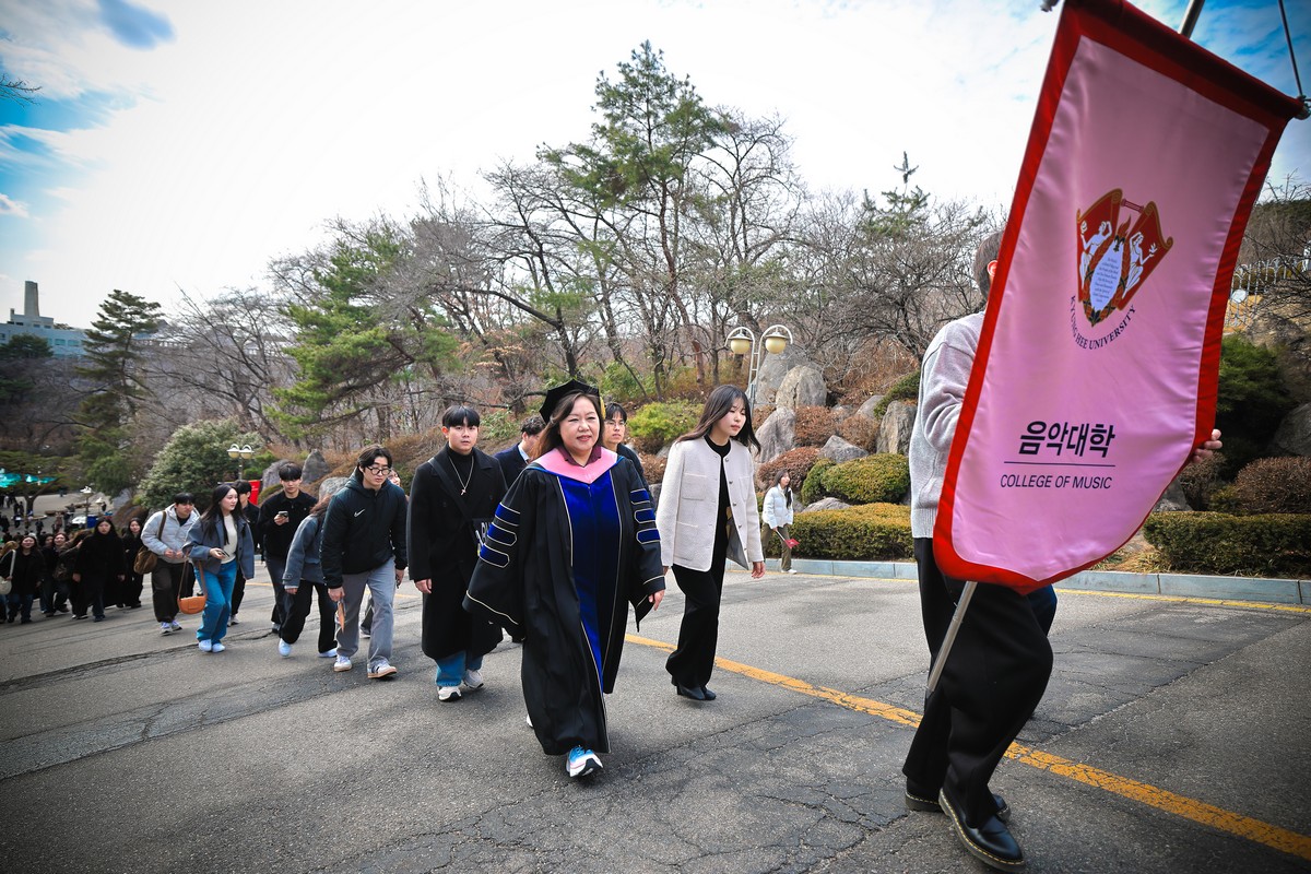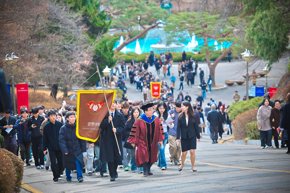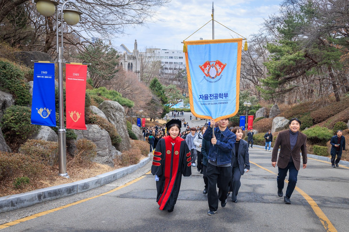 교시탑에서 출발하여 중앙로를 지나 레드카펫이 깔린 평화의 전당을 향해 단대기 행렬이 이어진다. 25개 단과대학 6,067명의 신입생이 경희인으로서 첫걸음을 떼는 경희로운 순간이다. 2013학년도부터 시작된 입학식 단대기 행렬은 경희인으로서 출발을 알리는 상징적인 의식이다.