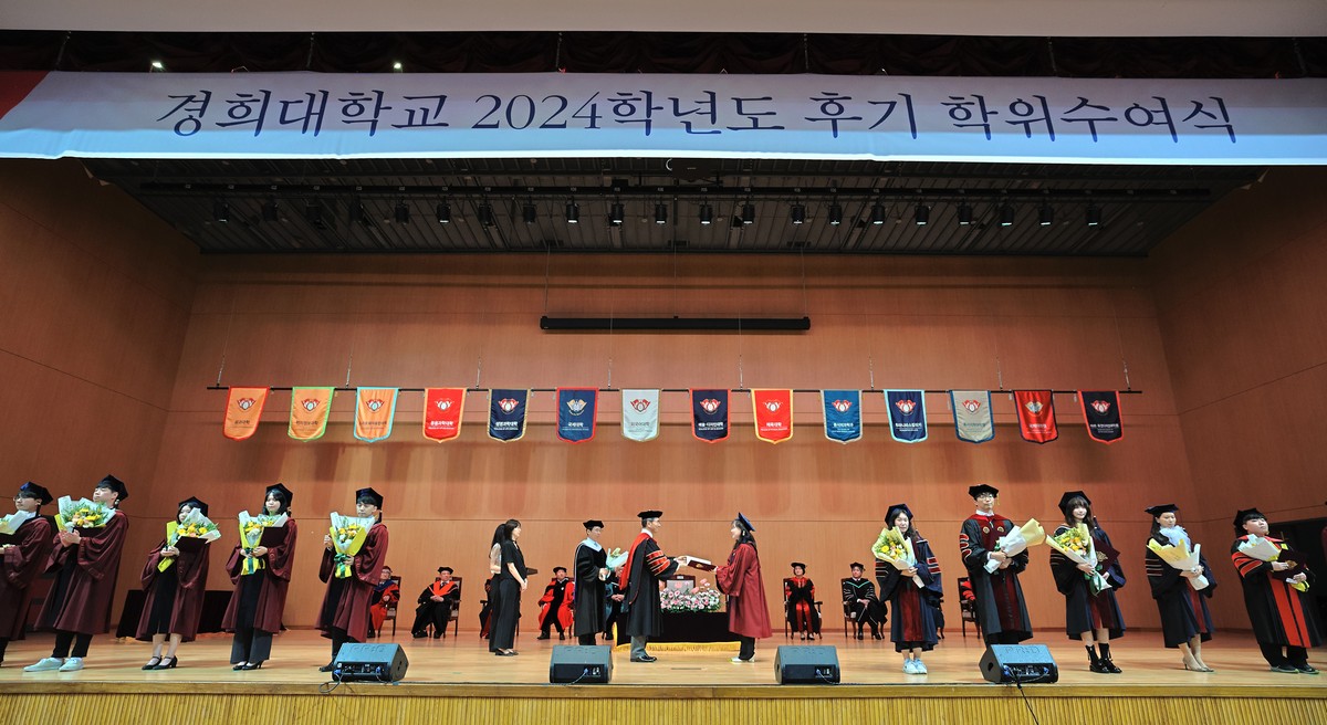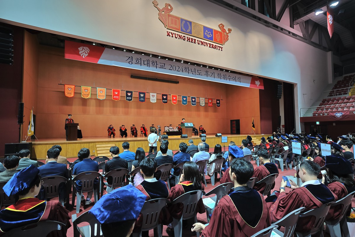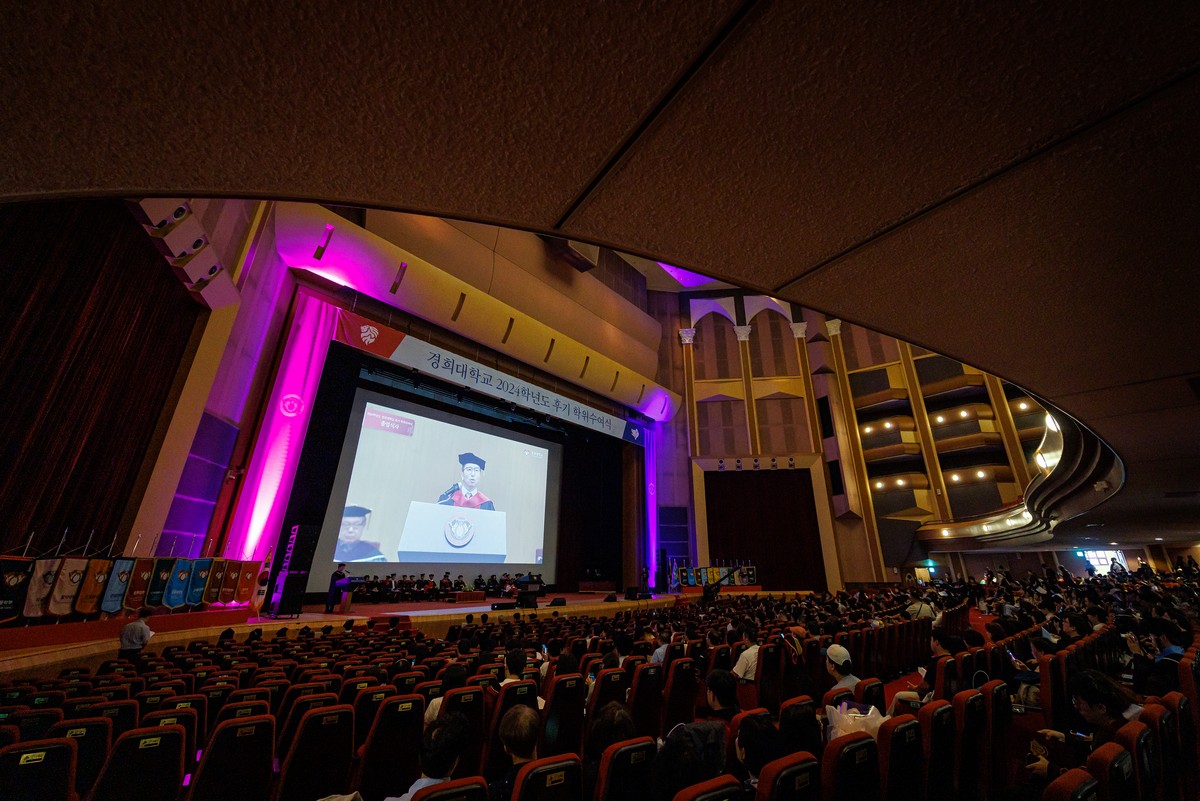 2024학년도 후기 학위수여식이 8월 20일(수) 평화의 전당과 선승관에서 개최됐다. 박사 195명, 석사 1,472명, 학사 1,665명 등 총 3,332명이 학위를 받았다. 김진상 총장은 ‘’세상의 빛‘이 되는 탁월한 세계시민의 길’이라는 축사를 통해 “자기 성찰과 탐구를 통해 아름다운 세상을 밝히는 참된 빛이 되길 희망한다”고 기원했다. 경희는 22일(금)까지 졸업주간으로 지정해 캠퍼스 곳곳 졸업생을 축하하기 위한 포토존을 운영했다.